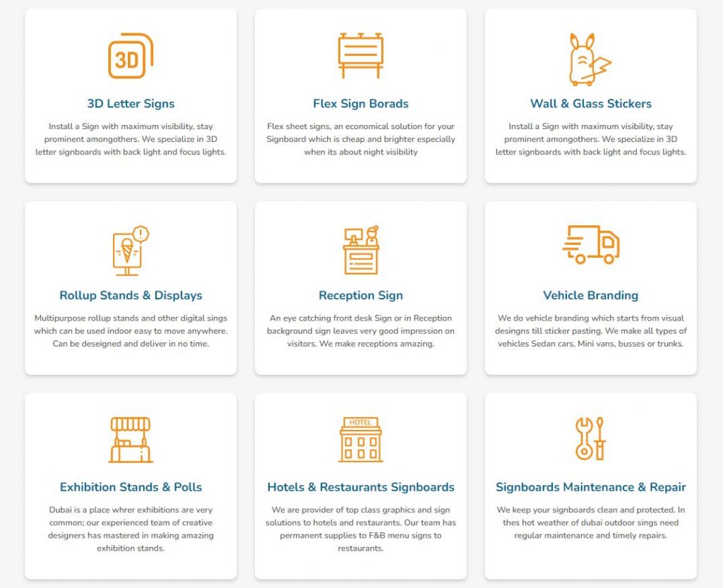 We provide quality signage solutions at fantastic prices across Dubai. Our expertise in the signage industry is unsurpassed and our level of service and quality of product is unbeatable.
